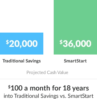 The additional amount of your regular payments is designed to help the cash value of the policy grow, tax-free, until your child withdraws it for a future need. SmartStart policies are designed to be flexible to meet your savings goals and your budget.